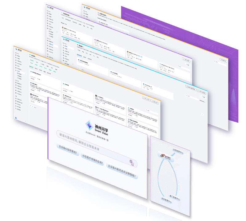 打通GenAI落地企业的算力、、、、模型、、、、知识、、、、应用四大要素,,综合解决GenAI工程在选、、、、练、、、用、、、、管四大环节的问题,,,旨在为企业的数智化转型提供全套的GenAI智能应用工程流水线。。。。南宫娱乐问学包括模型算力管理平台、、、、企业私域知识管理平台、、、AI应用工程平台三大模块,,为企业提供更先进、、、更匹配的大模型,,解决了算力上信创适配、、、融合调度、、企业私域大模型高效推理训练问题,,同时解决了数据到知识的向量化以及场景应用的轻量化组装问题。。。。